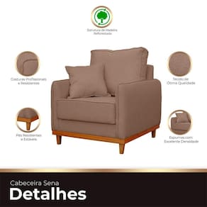 Adquira a Poltrona Sena e eleve o nível de sofisticação do seu ambiente. Esta peça de alto padrão, pertencente à linha alta, é sinônimo de modernidade e elegância. Com detalhes em sua base e pé de madeira de eucalipto envernizada, além de lindas almofadas que agregam charme à decoração, a Poltrona Sena é perfeita para em salas, recepções ou quartos de hotel. Seja para relaxar ou receber seus convidados, esta poltrona oferece conforto e estilo incomparáveis. Transforme seu espaço com um toque de luxo e diferenciação com a Poltrona Sena.