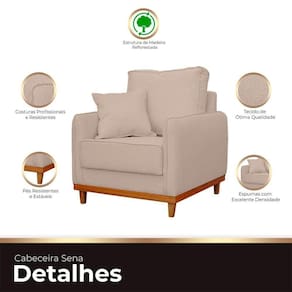 Adquira a Poltrona Sena e eleve o nível de sofisticação do seu ambiente. Esta peça de alto padrão, pertencente à linha alta, é sinônimo de modernidade e elegância. Com detalhes em sua base e pé de madeira de eucalipto envernizada, além de lindas almofadas que agregam charme à decoração, a Poltrona Sena é perfeita para em salas, recepções ou quartos de hotel. Seja para relaxar ou receber seus convidados, esta poltrona oferece conforto e estilo incomparáveis. Transforme seu espaço com um toque de luxo e diferenciação com a Poltrona Sena.