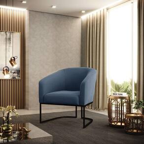 Poltrona Stella Suede Base Metálica Industrial Preto - D`Rossi - Azul Marinho