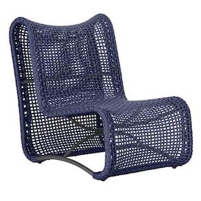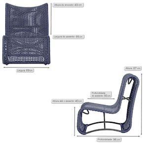 Poltrona Texas Alumínio Preto Corda Náutica Trama Azul