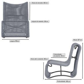 Poltrona Texas Alumínio Preto Corda Náutica Trama Prata