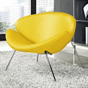 AS IMAGENS SÃO MERAMENTE ILUSTRATIVAS E PODEM SOFRER VARIAÇÕES DE COR E PEQUENOS DETALHES DE ACORDO COM O SEU MONITOR, ILUMINAÇÃO DO AMBIENTE E ATÉ MESMO A SUA PERCEPÇÃO VISUAL.Poltrona Trevo Couro SintÃtico Amarelo Base Cromada