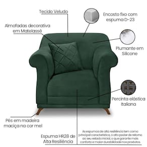 A poltrona Arras tem um toque retro clássico, sua principal característica a versatilidade. Ele se encaixa em qualquer estilo de decoração: na sua casa ou no seu escritório, esse modelo garante beleza e conforto. Feito em madeira de reflorestamento e com suas espumas de alta resiliência tem como principal característica, o alto poder de retorno ao seu estado inicial, o que garante mais conforto e maior durabilidade nos produtos Acompanha Almofadas extras: 01 Acompanha Puff: Não Almofada do assento: Fixa Almofada do encosto: Fixa Altura do assento até o chão: 45 Altura do Encosto: 45 Altura dos Pés: 12 Ambiente Principal: Sala de Estar Complexidade da Montagem: Baixa: pode ser montado por uma pessoa sozinha Cor: Verde Floresta Cor do Produto: Verde Floresta Design Assinado: Não Enchimento do Assento: Espuma D-28 Enchimento do Braço: Espuma D-26 Enchimento do Encosto: Espuma D-26 Encosto para a Cabeça: Não Estampado: Não Extensível: Não Firmeza do Assento: Macio Informações Complementares: A poltrona Arras tem um toque retro clássico, sua principal característica a versatilidade. Ele se encaixa em qualquer estilo de decoração: na sua casa ou no seu escritório, esse modelo garante beleza e conforto. Feito em madeira de reflorestamento e com Itens Inclusos: 1 Poltrona Linha ou Coleção: Arras Manual de Montagem e Instalação: https://cdn2.madeiramadeira.com.br/atributo/spezzia-decor/1254115-manual-arras-pdf.pdf Material do Braço: estofado Material dos Pés: Madeira Maciça Modelo de Poltrona: Fixo Necessita Montagem: Sim Origem do Produto: Nacional Peso: 27.5 Possui Percintas Elásticas: Sim Possui Pés: 04 Possui Rodízio: Não Recomendações de Uso, Manutenção e Limpeza: Limpeza: Utilize pano levemente úmido Sistema de Montagem: É necessário apenas fixar os pés. Suporta Até (kg): 150 Tecido Predominante: Veludo Tipo de Assento: Fixo Tipo de Encosto: Fixo Tipo de Espuma do Assento: Espuma HR Tipo de Poltrona: Decorativa