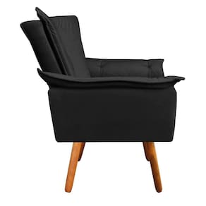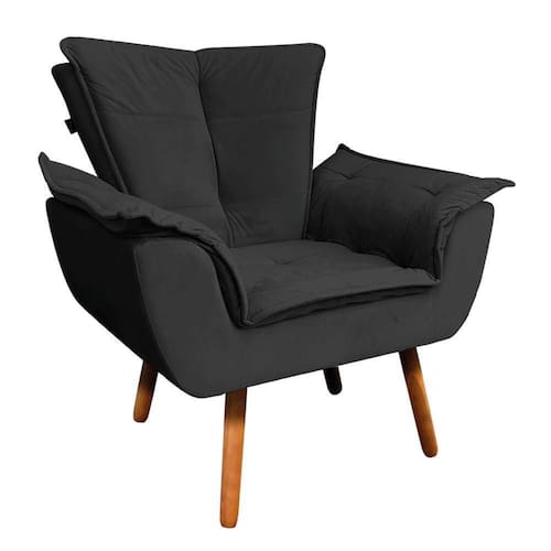 Poltrona Opala Veludo Preto Pés Palito Castanho - D'Rossi