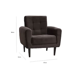 A Poltrona que decora sua recepcao e sua sala, linda e aconchegante a Poltrona Livia tem com design moderno que valoriza seu ambiente. Poltrona decorativa de um lugar suporta ate 110 kg. Ideal para decoracao de salas de tv, de estar e quartos.