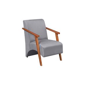Poltrona Venus 1 Lugar Braço Madeira Maciça Tecido Suede Unidecor - Cinza