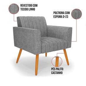 Quer uma decoração única e sofisticada? A Poltrona Viena é ideal para quem está em busca de um móvel versátil e diferenciado. Esse tipo de peça é ideal para ambientes modernos e descontraídos. Vem com uma ideia totalmente diferente, devido sua curva e forma suave, os detalhes gomados do tecido são tendências de decoração atuais. Uma dica legal de complemento é escolher almofadas que combinem com a poltrona. Sua estrutura é confeccionada em madeira de eucalipto proveniente de reflorestamento, o estofamento do assento é composto de espuma prorelax D-28 no encosto, e é revestido em Linho um tecido aconchegante, resistente e extremamente luxuoso. Sua sustentação é dada pelos tradicionais Pés Palito Castanho, suportando em média até 115 Kg. Crie um lindo efeito visual, em qualquer lugar da sua casa ou escritório! Garanta já sua Poltrona Viena.