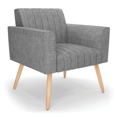 Poltrona Viena Gomada Linho Pés Palito Natural - D`rossi Cor A26 Grafite - Cinza