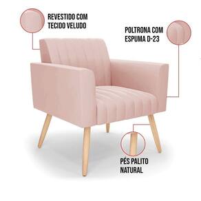 Quer uma decoração única e sofisticada? A Poltrona Viena é ideal para quem está em busca de um móvel versátil e diferenciado. Esse tipo de peça é ideal para ambientes modernos e descontraídos. Vem com uma ideia totalmente diferente, devido sua curva e forma suave, os detalhes gomados do tecido são tendências de decoração atuais. O tom Rosê vem ganhando cada vez mais espaço no mercado, uma cor que traz elegância e combina com vários tipos de decoração. Uma dica legal de complemento é escolher almofadas que combinem com a poltrona. Sua estrutura é confeccionada em madeira de eucalipto proveniente de reflorestamento, o estofamento do assento é composto de espuma prorelax D-28 no encosto, e é revestido em Veludo um tecido aconchegante, resistente e extremamente luxuoso. Sua sustentação é dada pelos tradicionais pés palito natural, suportando em média até 115 Kg. Crie um lindo efeito visual, em qualquer lugar da sua casa ou escritório! Garanta já sua Poltrona Viena.