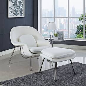 Juntas, a Womb Chair e o puff criam um conjunto de assento elegante e confortável, ideal para salas de estar, escritórios ou qualquer espaço onde o conforto e o design sofisticado sejam desejados.