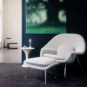 A Womb Chair, projetada por Eero Saarinen em 1948, é um ícone do design de mobiliário moderno do século XX. Ela foi criada para proporcionar conforto e aconchego, como um "ventre", daí o nome "Womb". A poltrona possui uma forma orgânica e envolvente, com uma estrutura ampla e curvas suaves que se adaptam ao corpo, permitindo várias posições de relaxamento.