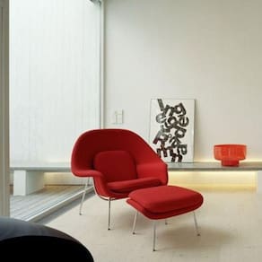 A Womb Chair, projetada por Eero Saarinen em 1948, é um ícone do design de mobiliário moderno do século XX. Ela foi criada para proporcionar conforto e aconchego, como um ventre, daí o nome Womb. A poltrona possui uma forma orgânica e envolvente, com uma estrutura ampla e curvas suaves que se adaptam ao corpo, permitindo várias posições de relaxamento.