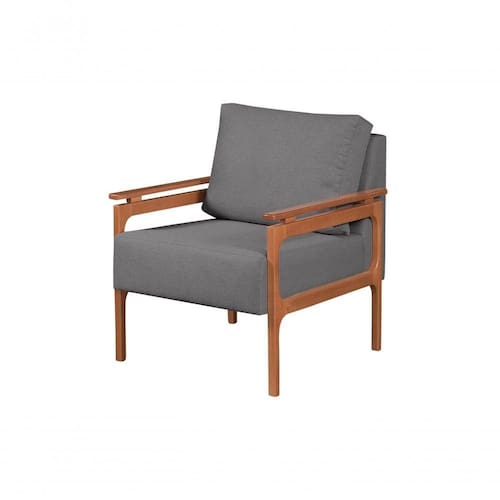 Base e braços demadeira maciça com detalhes de apoio