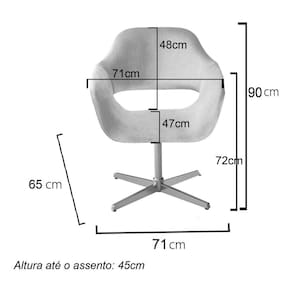 Poltrona Decorativa Zara da Bella Decor Estofados, tem um design todo diferenciado, estilosa e elegante deixando seu ambiente agradável. Item indispensável para a decoração da sua casa, escritório, também fica linda em recepção de empresas e comércios com ótimo aproveitamento de espaço, versátil, combina com qualquer ambiente. Especificações do produto:Estrutura: madeira bruta prensada com espuma D26Pés reforçados feitos em madeira e chapa de metalO pé vai separado, mas é muito simples de colocar, vão 4 parafusos e chave já inclusa.Tecidos em Veludo, Suede, Linho e CorinoProduto Seguro para até 120kgMedidas: Altura: 90 cmLargura: 71 cmProfundidade: 65 cmPeso com a embalagem: 13,1 kg Itens inclusos:1 Poltrona ZARA (no tecido escolhido)1 base giratória de alumíniokit 4 parafusos + chavinha.Importante:Nossas entregas são realizadas de segunda à sexta-feira das 8h às 18h (não é possível agendar dia ou hora)Não nos responsabilizamos por montagem e desmontagem, transporte por escadas/elevadores/guincho.Confira as dimensões deste produto e certifique-se de que passará normalmente por elevadores/portas/corredor de seu imóvel.Todos os produtos são revisados antes do envio.É dever do consumidor conferir tudo no ato da entrega.Só assine o documento depois de abrir a embalagem e conferirOBS: Se optar pela devolução ou troca, devem ser utilizadas embalagens capazes de proteger o produto.