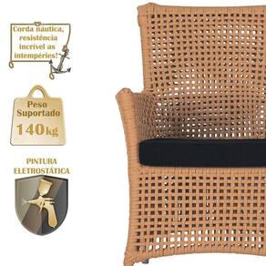 A corda nautica adiciona um toque de rusticidade moderna, enquanto o estofado impermeavel garante que sua poltrona esteja sempre impecavel, mesmo apos uma chuva inesperada ou um acidente com liquidos.