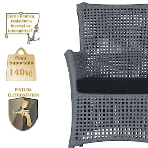 Poltronas Igapó Alumínio Pintura Preta Corda Náutica E12 Prata
