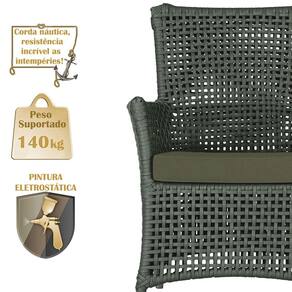 A corda náutica adiciona um toque de rusticidade moderna, enquanto o estofado impermeável garante que sua poltrona esteja sempre impecável, mesmo após uma chuva inesperada ou um acidente com líquidos.