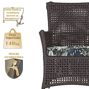 A corda náutica adiciona um toque de rusticidade moderna, enquanto o estofado impermeável garante que sua poltrona esteja sempre impecável, mesmo após uma chuva inesperada ou um acidente com líquidos.