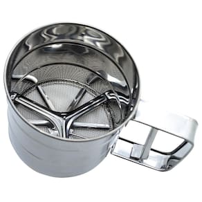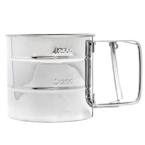 Polvilhador fabricado em aço inox com funcionamento manual, produto em forma de caneca. Com funcionamento super simples, basta pressionar a alavanca que fica na alça do povilhador e pronto, o ingrediente será polvilhado sobre o alimento que deseja preparar.