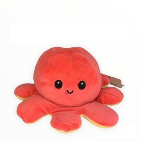 Polvo Pelúcia Reversível Salmão Escuro Feliz/amarelo Bravo O polvo de pelúcia reversível tem encantado a todos. Além de ser lindo, pode ter seu lado trocado, mudando seu humor.