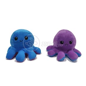 Polvo Reversível Bipolar de Pelúcia Humor Feliz e Bravo 2 em 1 TikTok Fofinho Macio - Azul e Roxo