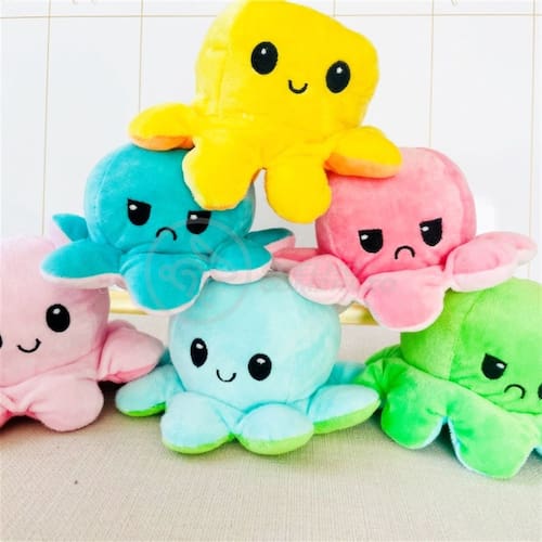 Polvo Reversível de Pelúcia Feliz e BravoATENÇÃO: A cor da pelúcia será enviada de maneira aleatória sem a opção de escolha.Esse lindo polvo de pelúcia é muito engraçadinho e fofo. Use para demonstrar que está cheio de alegria e também para mostrar quando está bravo (a). Produto com cores vivas, material de excelente qualidade e muito macio. Perfeito para brincar e decorar seu ambiente.Detalhes do Produto:- Tamanho Aproximado: 20 x 20 x 10 cm;- Produto seguro, antialérgico e não-tóxico;- Fácil de limpar, use um pouco de sabão e água para remover manchas;- Material de enchimento: algodão macio.Incluído na Embalagem:- 1 × Polvo Reversível de Pelúcia Feliz e BravoCuidados com a pelúcia:- Não deixe o brinquedo encostado ou próximo de paredes úmidas, pois ele pode mofar;- Lembre-se de abrir as janelas do quarto e deixar o ar circular pelo ambiente;- Remova o pó do brinquedo, pelo menos uma vez por semana. Dê algumas batidinhas com a palma da mão e se necessário passe o aspirador pela superfície da pelúcia;- Uma dica para evitar a proliferação de ácaros, é colocar o bicho de pelúcia em um saco plástico e deixá-lo por algumas horas no freezer;- Antes de colocar a pelúcia na máquina de lavar, é importante se atentar as descrições de lavagem que estarão na etiqueta do produto. Verifique as instruções e siga exatamente como recomendado para não estragar o tecido ou detalhes do brinquedo. Marca: Draik