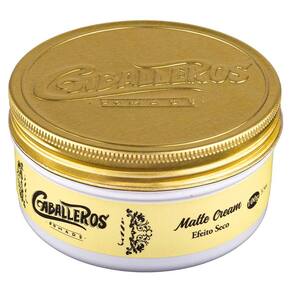 Matte Cream Caballeros é uma cera matte effect de fixação moderada que promove efeito seco/natural ao penteado. Possui consistência cremosa oferecendo maleabilidade ao cabelo resultando e um penteado com movimento e extremamente natural. Esse é o produto perfeito para quem quer arrumar o cabelo, mantendo a aparência natural, como se não tivesse utilizado nenhum produto. Recomendado para todos os tipos de cabelo.