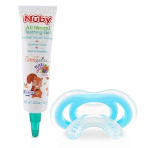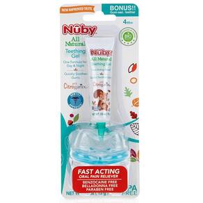Proporciona alivio para dores de dentição. Mordedor com design texturizado exclusivo proporciona conforto para as gengivas delicadas do bebê. Todo o Gel de Dentição Natural é seguro de engolir. -recomendado para +4 meses; -mordedor possui tampa -livre de benzocaína; -livre de BPA.