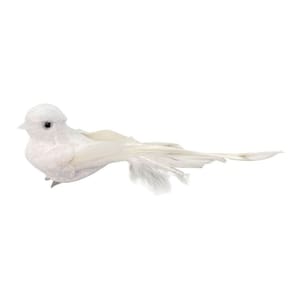 Pomba Branca Natal com Plumas e Lantejoulas 12cm com Presilha