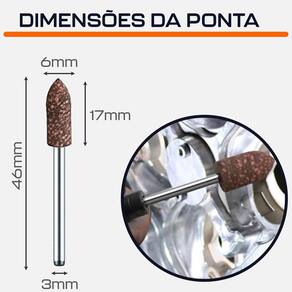 Ponta Montada 6mm Cônica Borracha com Abrasivos Haste 3mm para Micro Retíficas Dremax - Marca: Dremax - Referência: PM068 - Diâmetro da Ponta: 6mm - Comprimento: 46mm - Haste das pontas: 3mm - Material: Borracha com Abrasivos - Gramatura: Grão 120 - Formato: Bala Cônica - Pontas montadas de borracha com abrasivos são maleáveis, porém com alto pode de desbaste devido os seus abrasivos - Uso em micro retíficas de qualquer marca com mandril de 3mm - Indicada para afiação, esmerilhamento e desbaste em metais, joias, pedras preciosas, vidro, entre outros materiais - Seu formato facilita o trabalho em locais de difícil acesso - : 90 dias contra defeitos de fabricação A DREMAX é a primeira e única marca brasileira dedicada exclusivamente às micro retíficas, acessórios e acoplamentos para esta indispensável ferramenta. Seja para trabalhos de precisão, artesanato, modelagem ou reparos, a DREMAX tem o produto certo para você. Marca: Não Informado