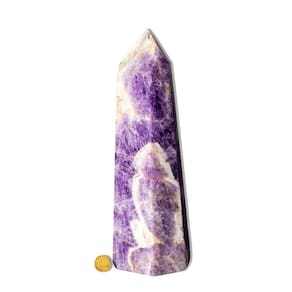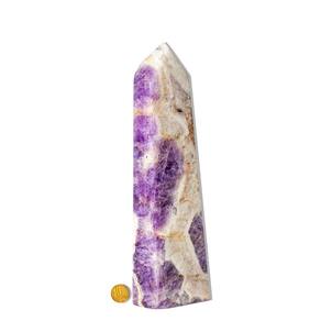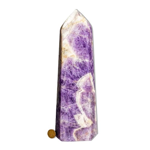Transforme seu ambiente em um refúgio de paz e beleza com a Ponta Ametista Chevron Gerador Lapidado. Mais do que uma peça decorativa, ela é um verdadeiro portal para harmonia e positividade. A ametista Chevron, com seu deslumbrante padrão roxo e branco, não apenas embeleza seu espaço, mas também atua como um escudo contra energias negativas, criando um ambiente equilibrado e acolhedor. Sua energia de serenidade eleva a espiritualidade e a estética de qualquer cômodo. Ideal para quem busca um ponto focal cativante, um toque de sofisticação ou simplesmente um espaço de tranquilidade, esta ponta de ametista proporciona uma experiência sensorial única. Adquira já a sua e traga mais beleza e energia positiva para o seu lar ou escritório! Características:\nNome: Ametista Chevron Cor: Roxo com veios brancos Lapidação: Gerador Sextavado Medidas Aproximadas: 27,2 x 9,5 Centimetros Peso: 2.184 Gramas (2 Kilos) Origem: CristaisdeCurvelo\nObs.: Por ser uma pedra natural, pode apresentar variações nas tonalidades e texturas, além de pequenas inclusões que são características normais dos minerais autênticos de garimpo. Propriedades e Benefícios:\nNeutraliza energias negativas e traz equilíbrio para o ambiente. Facilita a meditação e promove estados elevados de consciência. Acalma inseguranças, revitaliza o espírito e promove um ambiente de paz. \nTransforme seu espaço e eleve sua energia com a Ponta Ametista Chevron! Marca: CristaisdeCurvelo