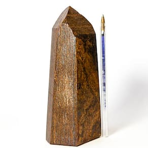 Ponta de Bronzita: equilíbrio e proteção em uma pedra poderosa. Ideal para decorar ambientes ou para proteção. Brilho intenso e poder curativo.