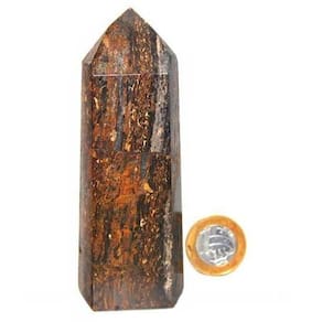 Ponta de Bronzita: equilíbrio e proteção em uma pedra poderosa. Ideal para decorar ambientes ou para proteção. Brilho intenso e poder curativo.