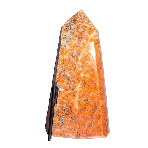 Aprecie a beleza única da Ponta de Pedra Calcita Laranja, com suas cores vibrantes e energizantes, perfeita para adicionar um toque de cor e energia a qualquer ambiente! Características do Produto: