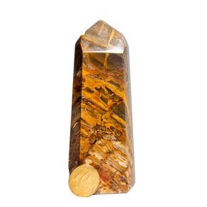 Esta peça única de Jaspe Monet é uma pedra natural mineral lapidada manualmente em formato de gerador sextavado com 6 faces e pico. Com cores vibrantes de marrom, rajas bege, cinza e toques de branco, ela é perfeita para colecionadores, práticas esotéricas ou para decorar ambientes, trazendo energia e sofisticação. Características:\nNome da Pedra: Jaspe Monet Cores: Marrom / Amarelo Queimado. O jaspe monet é uma pedra semipreciosa que pode ter cores terrosas, como marrom, verde, amarelo e vermelho. Corte: Gerador lapidado manual com 6 faces Claridade: Denso e brilhoso Medidas Aproximadas: 11 a 12 cm Peso Aproximado: 90 a 300 g Origem: Brasil (América do Sul)\nPor se tratar de um material natural, as pedras podem apresentar variações nas cores, veios e tonalidades. Estas características naturais não podem ser motivo de recusa do produto. As variações nas cores, veios e tonalidades são normais para a jaspe monet, pode receber uma variação que não se apresenta na foto(de acordo com estoque) Observação: Por ser uma pedra natural, pode apresentar variações nas tonalidades e grafismos, além de pequenas inclusões que podem se assemelhar a fissuras – um fenômeno natural em minerais autênticos. Recomendamos hidratação com óleo mineral para maior preservação. Ideal para quem busca uma peça única e cheia de energia para o seu espaço ou coleção. Marca: CristaisdeCurvelo