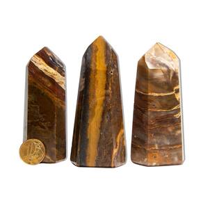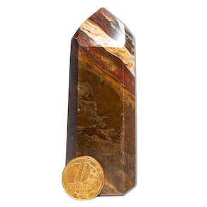 Nome da Pedra: Jaspe Monet Cores: Marrom / Amarelo Queimado. O jaspe monet é uma pedra semipreciosa que pode ter cores terrosas, como marrom, verde, amarelo e vermelho. Corte: Gerador lapidado manual com 6 faces Claridade: Denso e brilhoso Medidas Aproximadas: 90 a 100 mm Peso Aproximado: 120 a 180 gramas Origem: Brasil (América do Sul)