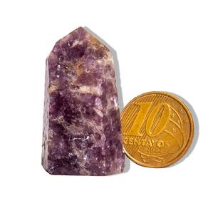 Lepidolita natural lapidada em formato gerador sextavado, ideal para equilíbrio emocional, energização de ambientes e práticas espirituais. Cada peça é única. Características do Produto: