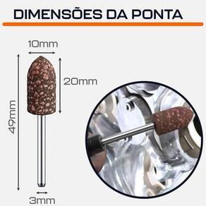 Ponta Montada 10mm Cônica Borracha com Abrasivos Haste 3mm para Micro Retíficas Dremax - Marca: Dremax - Referência: PM066 - Diâmetro da Ponta: 10mm - Comprimento: 49mm - Haste das pontas: 3mm - Material: Borracha com Abrasivos - Gramatura: Grão 120 - Formato: Bala Cônica - Pontas montadas de borracha com abrasivos são maleáveis, porém com alto pode de desbaste devido os seus abrasivos - Uso em micro retíficas de qualquer marca com mandril de 3mm - Indicada para afiação, esmerilhamento e desbaste em metais, joias, pedras preciosas, vidro, entre outros materiais - Seu formato facilita o trabalho em locais de difícil acesso - : 90 dias contra defeitos de fabricação A DREMAX é a primeira e única marca brasileira dedicada exclusivamente às micro retíficas, acessórios e acoplamentos para esta indispensável ferramenta. Seja para trabalhos de precisão, artesanato, modelagem ou reparos, a DREMAX tem o produto certo para você. Marca: Dremax Ean: 7734625987721
