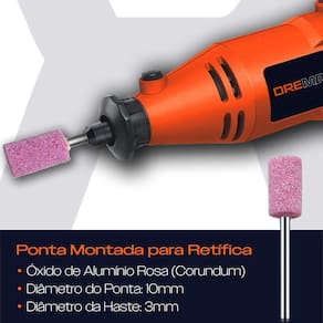 - Marca: Dremax - Referência: PM024 - Diâmetro da ponta: 10mm - Altura da ponta: 15mm - Comprimento total: 44mm - Diâmetro da haste: 3mm - Formato: Cilíndrica - Gramatura: Grão 120 - Material da ponta: Óxido de alumínio Rosa Corundum - Indicada para limpezas e acabamentos em superfícies - As pontas montadas rosa são indicadas para uso geral - Uso em micro retíficas de qualquer marca com mandril de 3mm - Indicada para afiação, esmerilhamento e desbaste em metais, joias, pedras preciosas, vidro, entre outros materiais - Seu formato facilita o trabalho em locais de difícil acesso - Garantia: 90 dias contra defeitos de fabricação