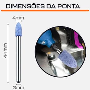 Ponta montada 4mm tipo bala rebolo abrasivo azul haste 3mm para micro retíficas dremax - marca: dremax - referência: pm047 - diâmetro da haste: 3mm - diâmetro da ponta: 4mm - altura da ponta: 12mm - comprimento total: 44mm - formato: bala cônica - as pontas montadas azuis permitem um acabamento mais fino que as tradicionais pontas rosas - material da ponta: óxido de alumínio zircônia azul corundum - indicada para limpezas e acabamentos em superfícies - uso em micro retíficas de qualquer marca com mandril de 3mm - indicada para afiação, esmerilhamento e desbaste em metais, joias, pedras preciosas, vidro, entre outros materiais - seu formato facilita o trabalho em locais de difícil acesso - : 90 dias contra defeitos de fabricação a dremax é a primeira e única marca brasileira dedicada exclusivamente às micro retíficas, acessórios e acoplamentos para esta indispensável ferramenta. Seja para trabalhos de precisão, artesanato, modelagem ou reparos, a dremax tem o produto certo para você Como identificar a melhor ponta montada para você - ponta montada amarela: alta dureza para polimento fino - ponta montada azul: :alta dureza para acabamento médio - ponta montadas rosa: alta dureza e tenacidade acabamento grosso - ponta montada borracha verde: flexível, para retificação e polimento precisos - ponta montada de couro: desempenho melhor do que a ponta de borracha verde, também ideal para polimento - ponta montada borracha com abrasivos: retificação mais nítida e rápida - ponta montada de feltro: polimento fino em metais e materiais não metálicos Marca: Não Informado Ean: 7734625987394
