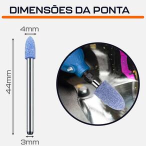 Ponta montada 4mm tipo bala rebolo abrasivo azul haste 3mm para micro retíficas dremax - marca: dremax - referência: pm047 - diâmetro da haste: 3mm - diâmetro da ponta: 4mm - altura da ponta: 12mm - comprimento total: 44mm - formato: bala cônica - as pontas montadas azuis permitem um acabamento mais fino que as tradicionais pontas rosas - material da ponta: óxido de alumínio zircônia azul corundum - indicada para limpezas e acabamentos em superfícies - uso em micro retíficas de qualquer marca com mandril de 3mm - indicada para afiação, esmerilhamento e desbaste em metais, joias, pedras preciosas, vidro, entre outros materiais - seu formato facilita o trabalho em locais de difícil acesso - : 90 dias contra defeitos de fabricação a dremax é a primeira e única marca brasileira dedicada exclusivamente às micro retíficas, acessórios e acoplamentos para esta indispensável ferramenta. Seja para trabalhos de precisão, artesanato, modelagem ou reparos, a dremax tem o produto certo para você Como identificar a melhor ponta montada para você - ponta montada amarela: alta dureza para polimento fino - ponta montada azul: :alta dureza para acabamento médio - ponta montadas rosa: alta dureza e tenacidade acabamento grosso - ponta montada borracha verde: flexível, para retificação e polimento precisos - ponta montada de couro: desempenho melhor do que a ponta de borracha verde, também ideal para polimento - ponta montada borracha com abrasivos: retificação mais nítida e rápida - ponta montada de feltro: polimento fino em metais e materiais não metálicos Marca: Não Informado
