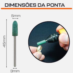 Ponta Montada Cônica 5mm de Borracha Abrasiva Haste 3mm para Micro Retifica Dremax - Marca: Dremax - Referência: PM057 - Diâmetro da cabeça: 5mm - Diâmetro da haste: 3mm - Comprimento total: 45mm - Gramatura: Grão 180 - Material da ponta: Borracha - Material da haste: aço inox - Pontas montadas de borracha Flexível, para retificação e polimento precisos - Uso em micro retíficas e mini lixadeiras de qualquer marca com mandril de 3mm - Seu formato facilita o trabalho em locais de difícil acesso - Uso em micro retíficas de qualquer marca com pinça de 3mm - Indicado para desbaste e semi-acabamento - Remoção de ferrugem de metal enferrujado, tratamento em joias e pré-acabamento em pedras, ouro e prata - Amplamente utilizado em moagem, molde, equipamentos médicos, equipamentos de beleza, manicure, ouro e prata jóias, aço inoxidável, vidro equipamentos, peças de máquinas e outros processos - Muito menos agressivo que tubos de lixa e pontas montadas rosa - Muito utilizado na primeira etapa no processo de polimento - Garantia: 90 dias contra defeitos de fabricação A DREMAX é a primeira e única marca brasileira dedicada exclusivamente às micro retíficas, acessórios e acoplamentos para esta indispensável ferramenta. Seja para trabalhos de precisão, artesanato, modelagem ou reparos, a DREMAX tem o produto certo para você. Marca: Dremax