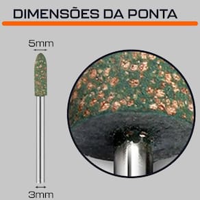 Ponta Montada 5mm Cônica Borracha Abrasiva Gergelim Haste 3mm para Micro Retifica Dremax - Marca: Dremax - Referência: PM087 - Diâmetro da cabeça: 5mm - Diâmetro da haste: 3mm - Gramatura: Grão 180 - Material da ponta: Borracha Abrasiva Gergelim - Material da haste: aço inox - Formato da ponta: Cônica tipo bala - Pontas montadas de borracha Flexível, para retificação e polimento precisos - Uso em micro retíficas e mini lixadeiras de qualquer marca com mandril de 3mm - Seu formato facilita o trabalho em locais de difícil acesso - Indicado para desbaste, semi-acabamento e polimento, dependendo do material - Pontas montadas de borracha com abrasivos são maleáveis, porém com alto pode de desbaste devido os seus abrasivos - Seu formato facilita o trabalho em locais de difícil acesso - Garantia: 90 dias contra defeitos de fabricação A DREMAX é a primeira e única marca brasileira dedicada exclusivamente às micro retíficas, acessórios e acoplamentos para esta indispensável ferramenta. Seja para trabalhos de precisão, artesanato, modelagem ou reparos, a DREMAX tem o produto certo para você. Marca: Dremax