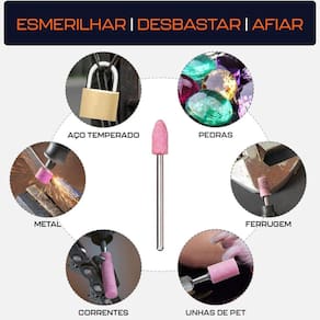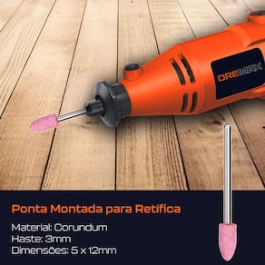 - Marca: Dremax - Referência: PM006 - Indicada para limpezas e acabamentos em superfícies - Diâmetro da ponta: 5mm - Altura da ponta: 12mm - Diâmetro da haste: 3mm - Comprimento total: 45mm - Material da ponta: Óxido de alumínio Rosa Corundum - Formato: Cilíndrica Ponta de Bala - As pontas montadas rosa são indicadas para uso geral - Uso em micro retíficas de qualquer marca com pinça de 3mm - Indicada para afiação, esmerilhamento e desbaste em metais, joias, pedras preciosas, vidro, entre outros materiais - Muito utilizada por ourives, relojoeiros, hobbistas e dentistas para desbastar e retificar peças em geral - Seu formato facilita o trabalho em locais de difícil acesso - Garantia: 90 dias contra defeitos de fabricação