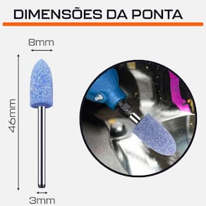 Ponta montada 8mm tipo bala rebolo abrasivo azul haste 3mm para micro retíficas dremax
