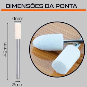 Ponta Montada de Feltro 4mm Cilíndrica Haste 3mm para Polimento com Micro Retíficas Dremax - Marca: Dremax - Referência: PM071 - Diâmetro da Ponta: 4mm - Comprimento: 42mm - Diâmetro da haste das pontas: 3mm - Indicado para polimentos - Formato: Cilíndrica - Uso em micro retíficas de qualquer marca que suporte prender hastes de 3mm - Para polir metais e plásticos em superfícies planas ou orifícios - Indicada para polimento de metais ferrosos ou não ferrosos, aço, aço inoxidável, alumínio, bronze, cobre, latão e plástico em geral - Garantia: 90 dias contra defeitos de fabricação A DREMAX é a primeira e única marca brasileira dedicada exclusivamente às micro retíficas, acessórios e acoplamentos para esta indispensável ferramenta. Seja para trabalhos de precisão, artesanato, modelagem ou reparos, a DREMAX tem o produto certo para você. Marca: Dremax Ean: 7734625985604