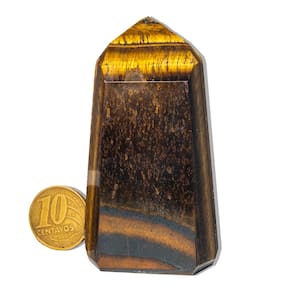 Essa ponta gerador de Olho de Tigre é uma pedra poderosa contra energias negativas. Ideal para quem busca força interior, foco e determinação no dia a dia. Nome da Pedra: Olho de TigreCor: Marrom com rajas pretas (variações naturais)Formato: Mini ponta gerador sextavadoTamanho Aproximado: 5 a 10 cmPeso Aproximado: 100 a 200 gramasClareza: Com brilho e sem transparênciaOrigem: Curvelo – MG (garimpo) Propriedades do Olho de Tigre\nPedra de proteção contra inveja e energias densas\nEstimula coragem, foco e autoconfiança\nUtilizada para fortalecer decisões e manter equilíbrio emociona\nOtima para carregar no bolso, altar ou mesa de trabalho\nObservação:Produto 100% natural, podendo apresentar variações nas tonalidades, grafismos e pequenas inclusões típicas de minerais de garimpo.Hidratada com óleo mineral para realçar o brilho.Compre apenas se estiver ciente das características naturais desta pedra! Marca: Não Informado