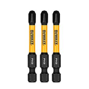 Conjunto de Três Pontas Phillips #3 Flextorq, cada uma com 2 1/4" de comprimento.