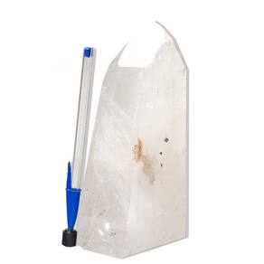 A ponta de Quartzo Cristal lapidado revela-se em sua transparência e pureza, com a presença de marcas e inclusões naturais, verdadeiros traços do tempo. Cada faceta cuidadosamente lapidada capta e direciona a essência pura e poderosa dessa joia da natureza, tornando cada peça exclusiva e carregada de significado.