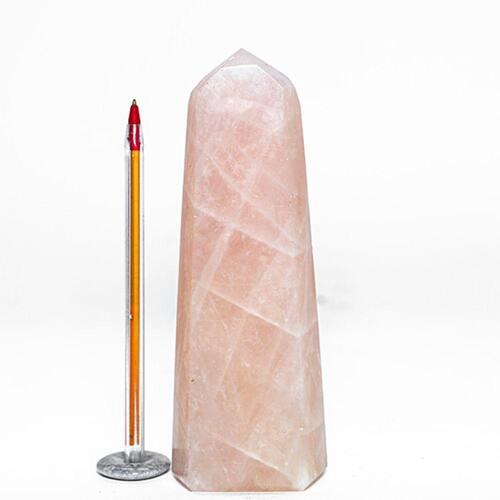 Uma ponta de Quartzo Rosa é uma formação cristalina natural feita de quartzo rosa. Ponta de classe B com uma cor rosa suave. Pedra do amor.